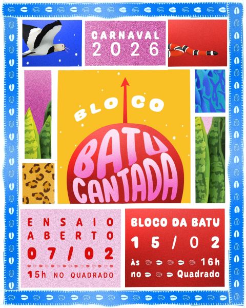 Regido pela Mestra Vanessinha, o Bloco da Batu promete repetir a energia que tem marcado suas apresentações, reunindo público, comunidade e integrantes em uma celebração coletiva marcada pela força da percussão e pela valorização da cultura popular brasileira. O bloco traz em seu abadá e em sua proposta estética referências às cosmologias Tupi-Guarani e Iorubá, matrizes fundamentais na formação cultural do Brasil.