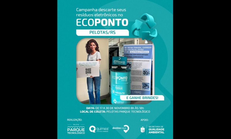 Disponível de 17 a 30 de novembro, quem realizar o descarte poderá trocar as doações por brindes O Pelotas Parque Tecnológico (PPT), em parceria com a Químea Inteligência Ambiental, iniciou nesta segunda-feira (17) a campanha Quinzena do Descarte de Resíduos Eletrônicos. A ação incentiva a doação de equipamentos eletrônicos fora de uso, garantindo o destino correto para esses itens. A iniciativa, [...]