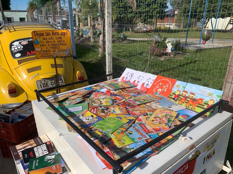 O projeto Fuscoteca do Amadinho, do escritor e agente cultural Rodrigo Seefeldt, alcançou neste final de semana a marca de mil livros distribuídos gratuitamente em São Lourenço do Sul. A Fuscoteca esteve na última semana na Escola Estadual Padre José Herbest participando do evento “A magia da leitura: troca, doação, rimas e versos... inspiração!”, onde distribuiu mais de 200 livros. Já no [...]