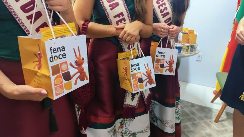 Representando a Fenadoce, estiveram presentes as baronesas eleitas para a edição de 2026, Andressa Tejada, Érika Maciel e Sarah Chagas, acompanhadas por integrantes da comissão organizadora da feira, Ariel João, Daniel Centeno, Eliane Sedrez, Luciana Silveira e Marcia Schwantz. A comitiva pelotense foi recepcionada pelas soberanas da Festa da Uva, a rainha Elisa D’Mutti e as princesas Júlia Scopel e Letícia Comin e por membros da comissão do evento na Serra Gaúcha.