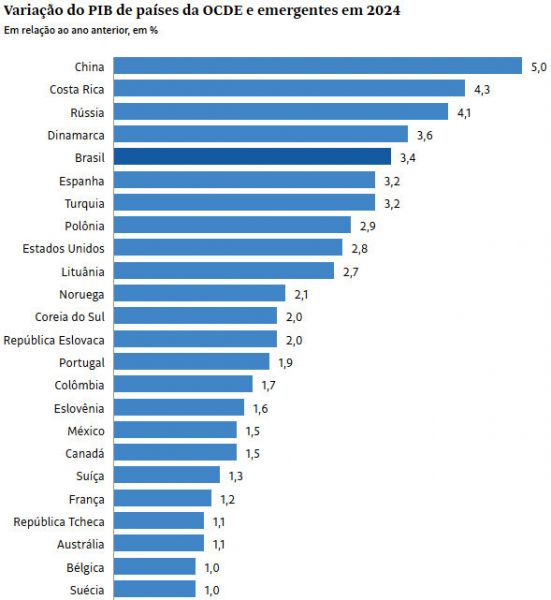 É o quarto ano seguido de expansão. Atividade econômica do Brasil está entre as que mais cresceram em 2024