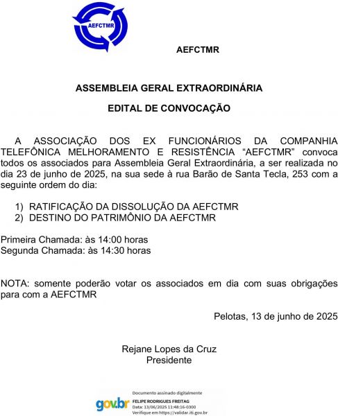 Edital AEFCTMR Convocação de AGE