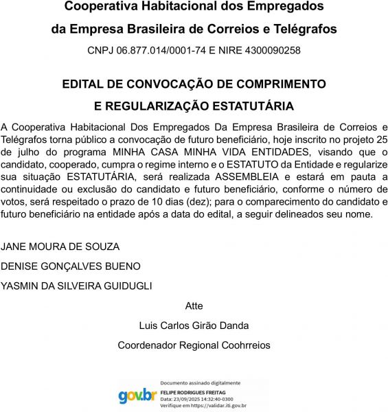 Edital da Cooperativa Habitacional dos Empregados da Empresa Brasileira de Correios e Telégrafos