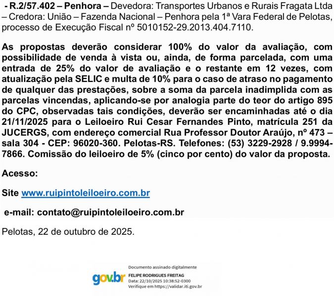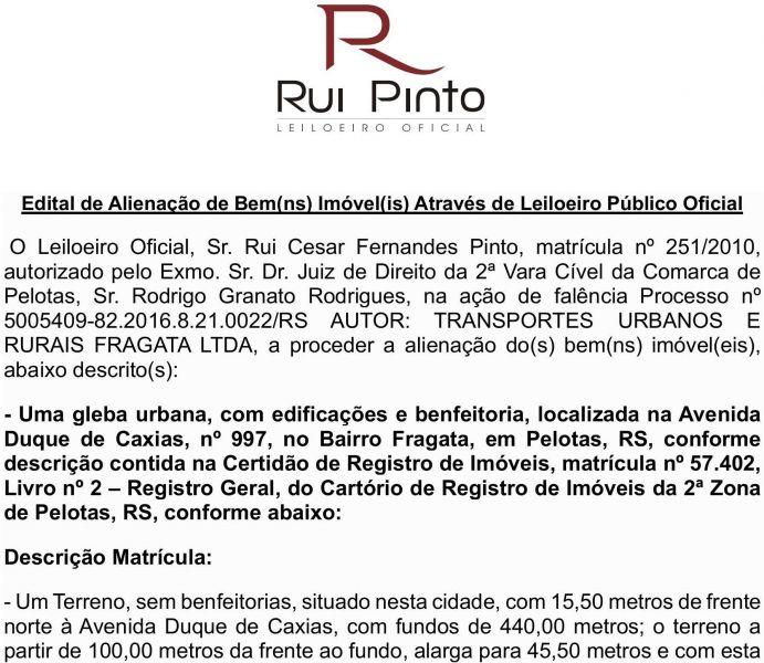 Edital de Alienação de Bem Imóvel através de Leiloeiro Público Oficial