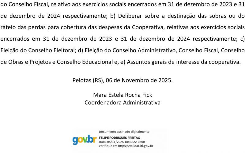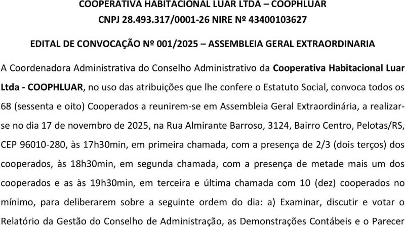 Edital de Convocação Cooperativa Habitacional Luar Ltda. COOPHLUAR