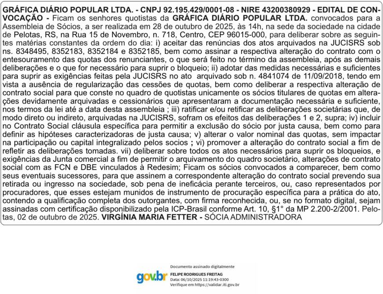 Edital de Convocação Gráfica Diário Popular Ltda.