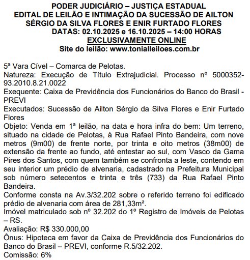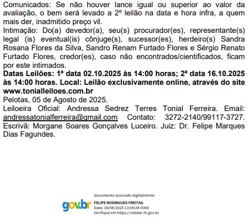 Edital de Leilão e Intimação da Sucessão de Ailton Sérgio da Silva Flores e outra