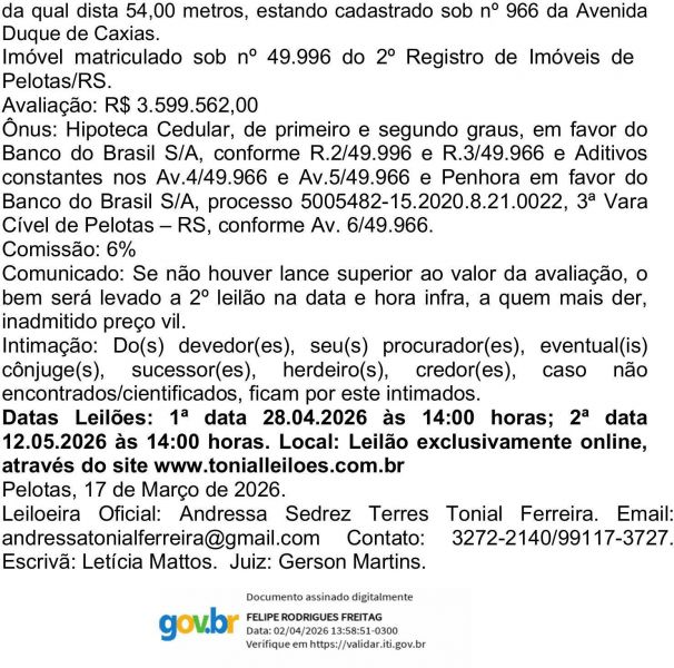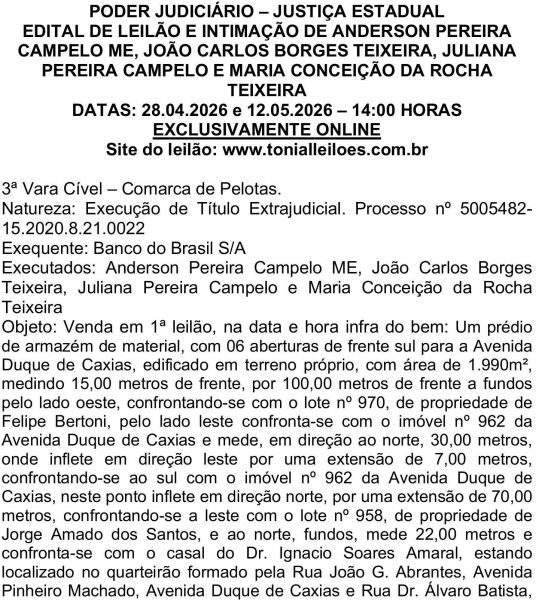 Edital de Leilão e Intimação de Anderson Pereira Campelo ME e outros