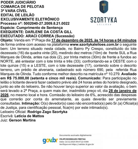 Edital de Leilão e Intimação de Araci Correa (Sucessão)