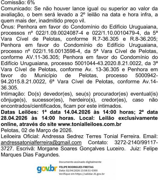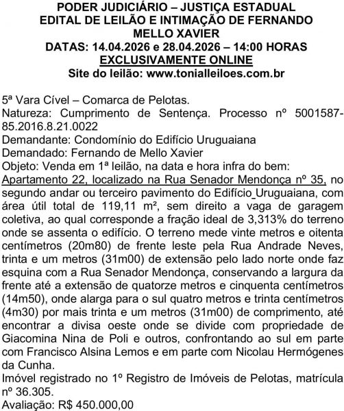 Edital de Leilão e Intimação de Fernando Mello Xavier