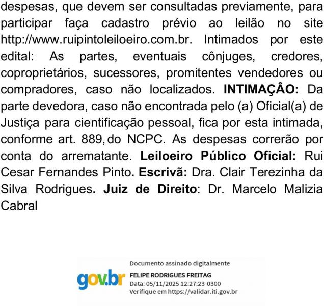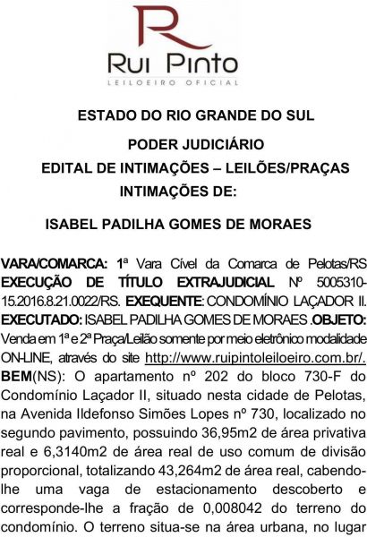 Edital de Leilão e Intimação de Isabel Padilha Gomes de Moraes