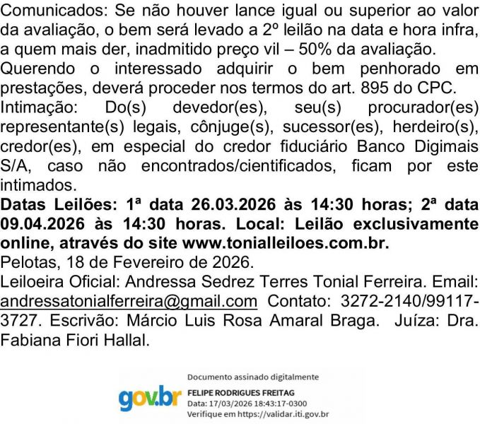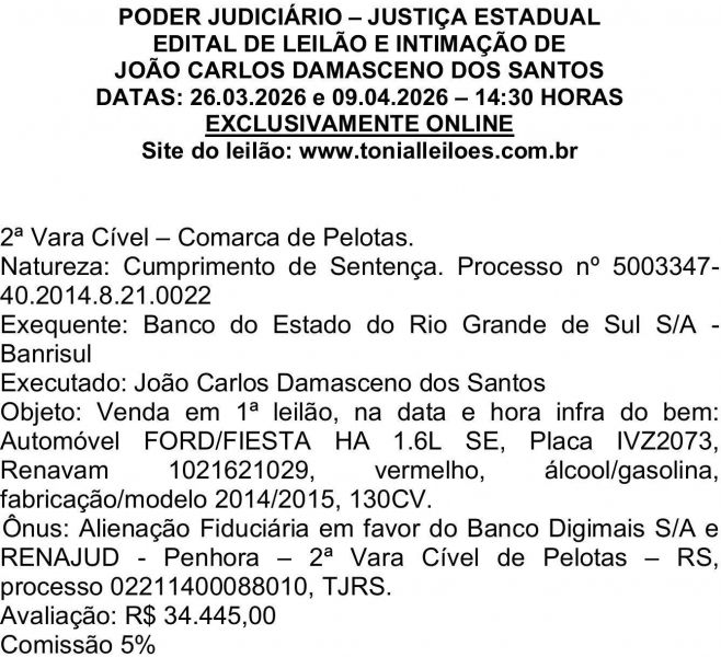 Edital de Leilão e Intimação de João Carlos Damasceno dos Santos