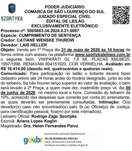 Edital de Leilão e Intimação de Andreia Borck Scheer e outro