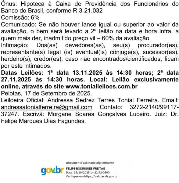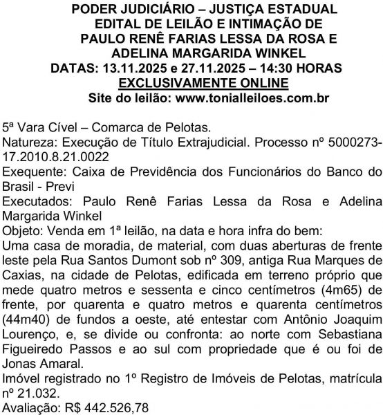 Edital de Leilão e Intimação de Paulo Renê Farias Lessa da Rosa e outra