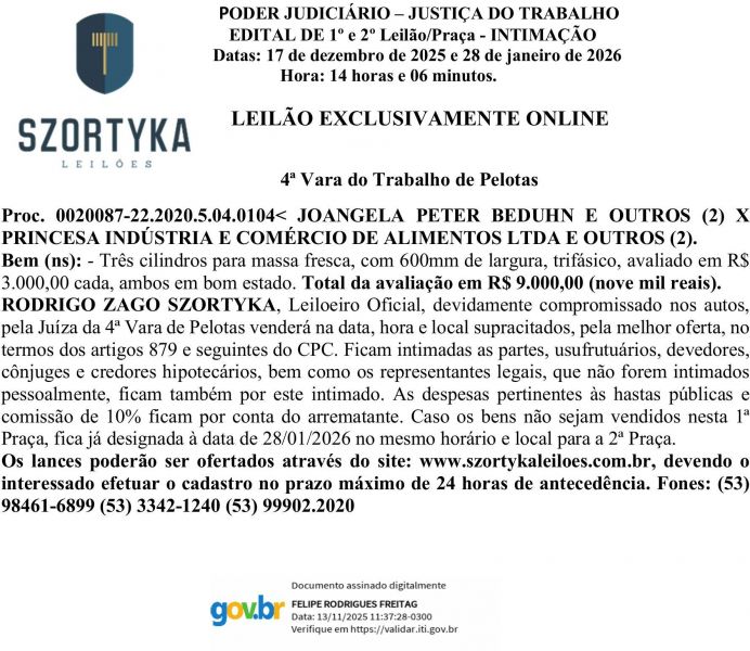 Edital de Leilão e Intimação de Princesa Indústria e Comércio de Alimentos Ltda. e outros