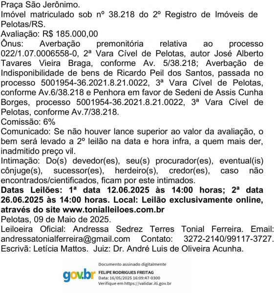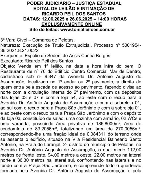 Edital de Leilão e Intimação de Ricardo Peil dos Santos