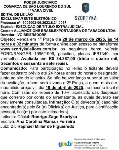Edital de Leilão de Alienação Fiduciária Banco Santander (Brasil) S/A X Caroline Bohm Gehrmann