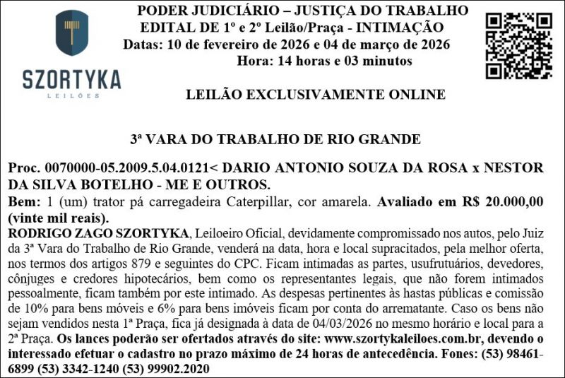 Edital Szortyka 3ª Vara do Trabalho de Rio Grande