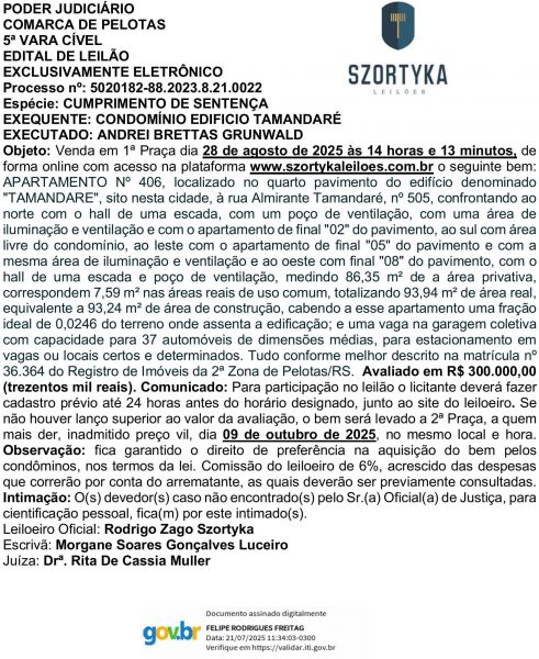 Edital Szortyka Leilão e Intimação de Andrei Brettas Grunwald