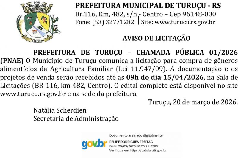 Edital Turuçu Chamada Pública nº 01/2026