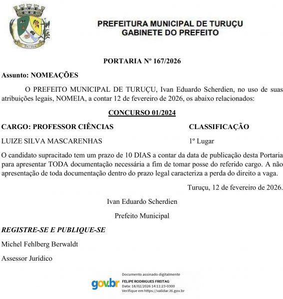 Edital Turuçu Portaria nº 167/2016