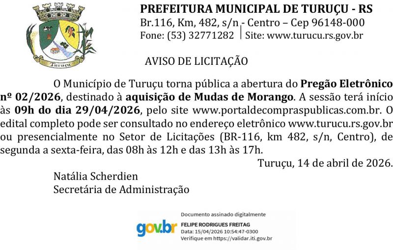 Edital Turuçu Pregão Eletrônico n] 02/2026