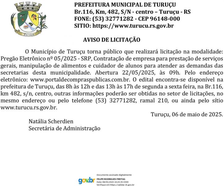 Edital Turuçu Pregão Eletrônico nº 05/2025