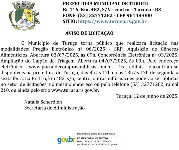 Edital Turuçu Pregão Eletrônico nº 06/2025
