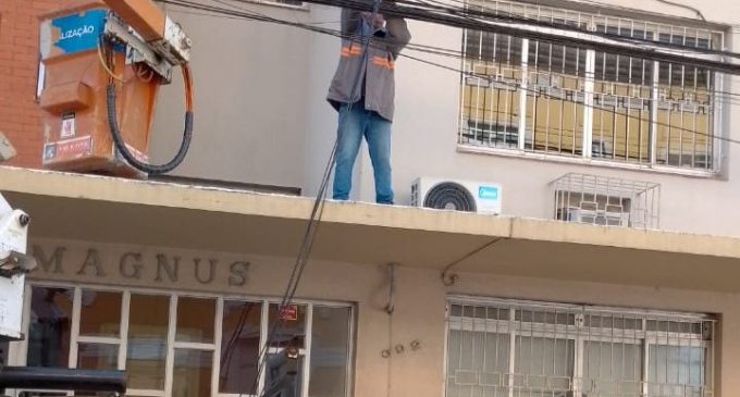 Equipe da Secretaria de Transporte e Trânsito (STT) trabalha para instalar novos fios, sendo que 800 metros do material foram furtados da rua Voluntários da Pátria, do trecho entre a Félix da Cunha e Gonçalves Chaves. Além do transtorno que o crime causa ao trânsito, a Prefeitura arca com consequências do prejuízo não previsto.