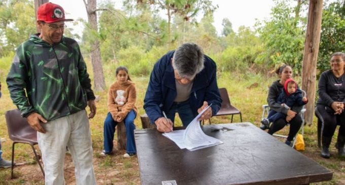 O prefeito Fernando Marroni formalizou, na manhã desta sexta-feira (2), a autorização ambiental que permite o início das atividades em área pública utilizada por 30 famílias do Assentamento Herdeiros da Resistência, localizado no 9º Distrito, Monte Bonito.