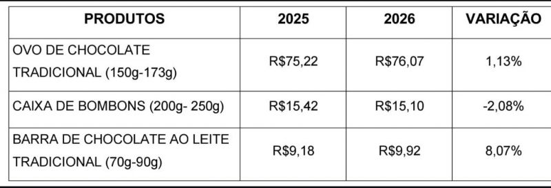 Equipe encontra alternativa de menor valor aos ovos e barras de chocolate, mais caros em 2026