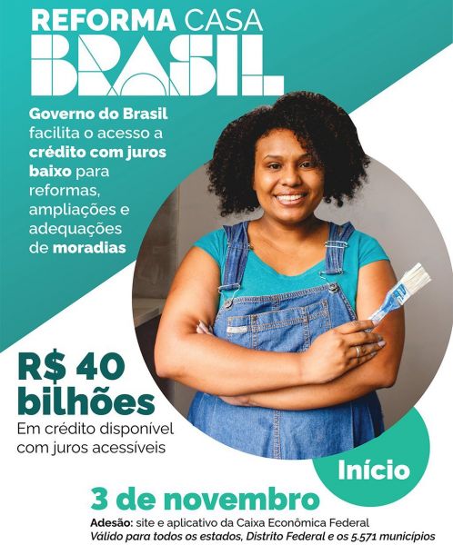 Novo programa do Governo do Brasil facilita acesso a crédito para reformas e ampliações de residências. Com juros baixos, prazo elástico e sem burocracia, novidade estará disponível a partir de 3 de novembro