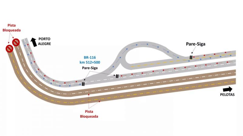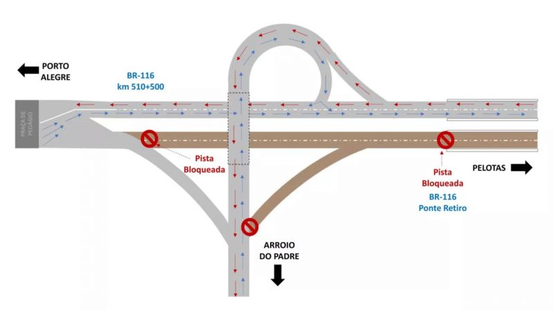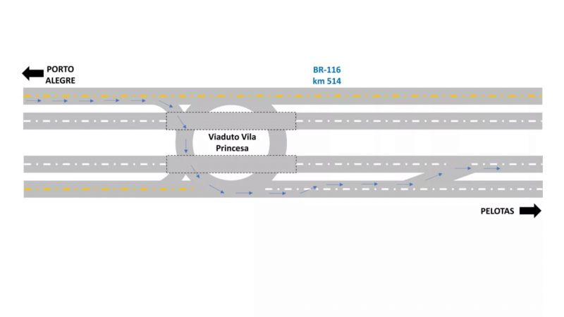 No sábado (04/10), durante a obra, o fluxo na ponte será totalmente bloqueado. Quem trafegar pela BR-116, no sentido Capital-Interior, será desviado para a pista sentido Interior-Capital, a partir do km 510. Aqueles que trafegarem de Arroio do Padre, não poderão acessar a alça que dá acesso à BR-116 a caminho de Pelotas. Será necessário continuar pela ERS-737 em direção à alça contrária, onde a sinalização permitirá que o usuário acesse a rodovia, em ambos os sentidos. No km 512, junto ao contorno do Caex, o tráfego funcionará em sistema Pare e Siga. Quem trafegar no sentido Pelotas, será direcionado para a via marginal, de onde acessará o viaduto da Vila Princesa, para que depois retorne à BR-116, no km 514. A previsão é que a intervenção, a ser iniciada pela manhã, seja concluída já à tarde.